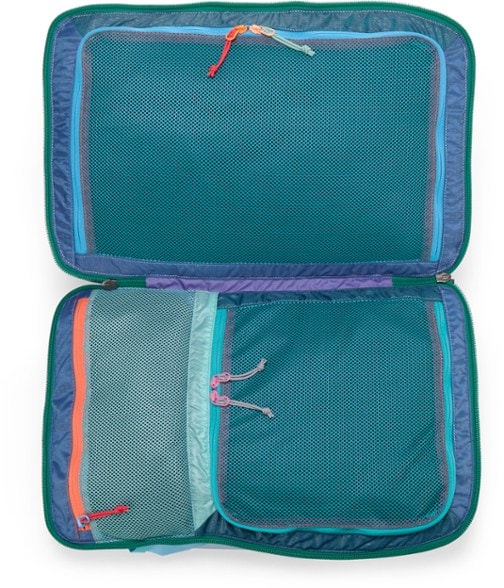 Cotopaxi: If you are looking to splurge a little more, Cotopaxi has one of the best functional backpacks. it opens up horizontally and has two separate compartments more like a suitcase (shown below).