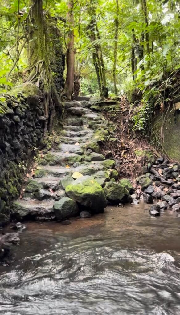 These steps are located to the right of the bridge that lies between Tabacon and the free hot springs.