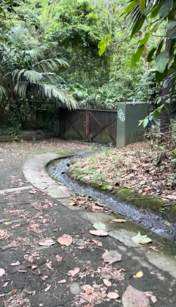 Once you reach the rock steps you will step down onto a concrete surface with shallow water that runs below the bridge.