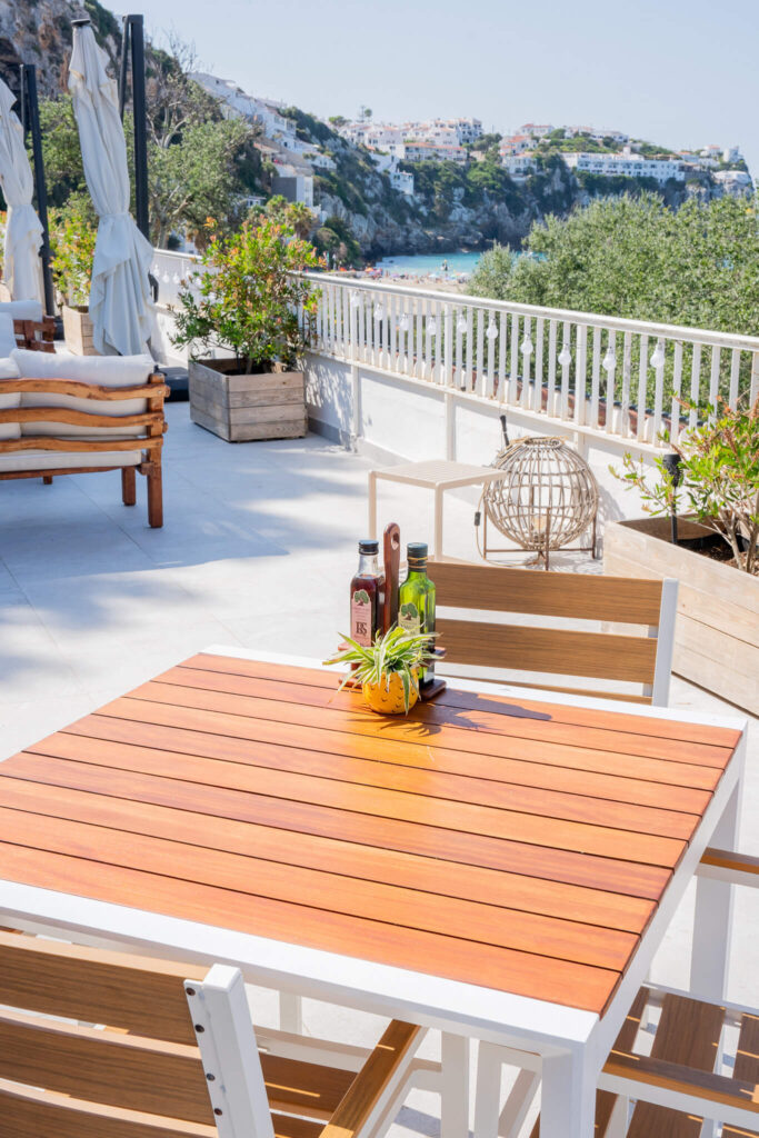 It is the only hotel that is located downhill, near the beach in Cala en Porter (rather than uphill in town or overlooking Cala en Porter beach.